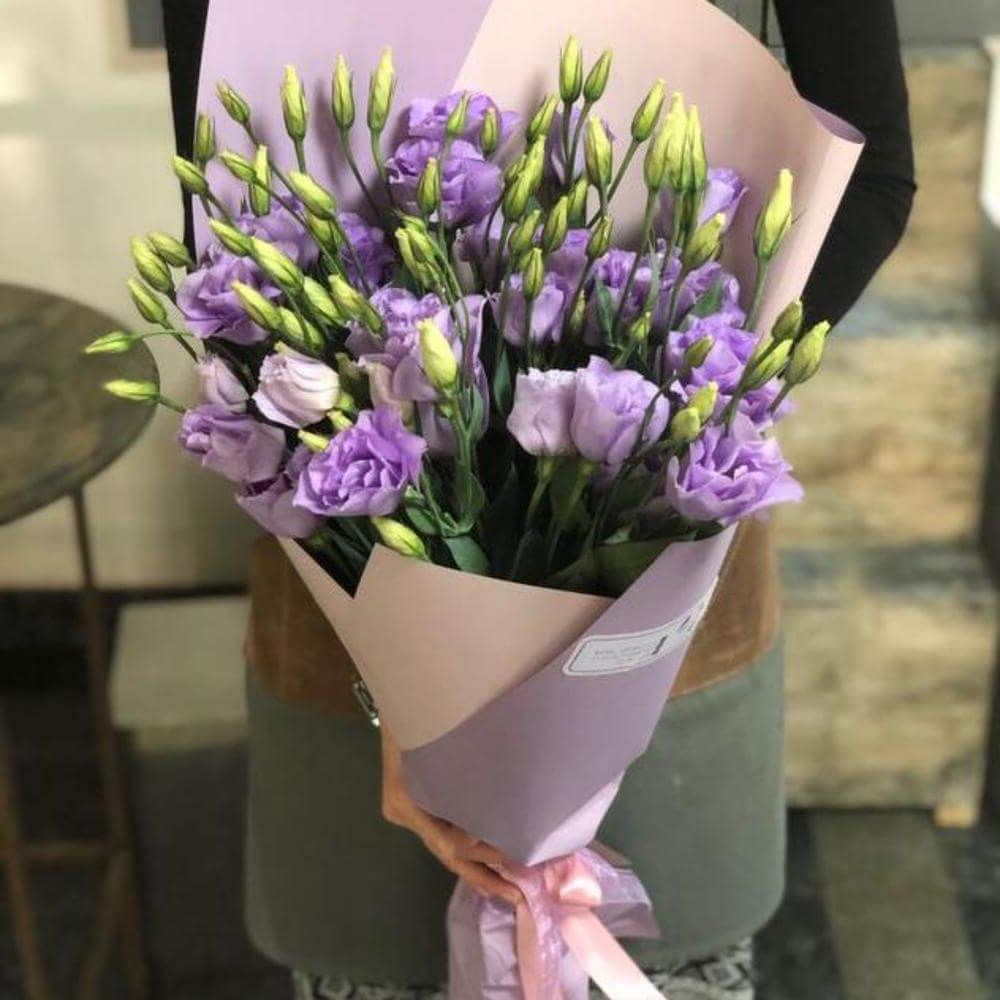 эустома - 21 шт., лента, дизайнерская упаковка.