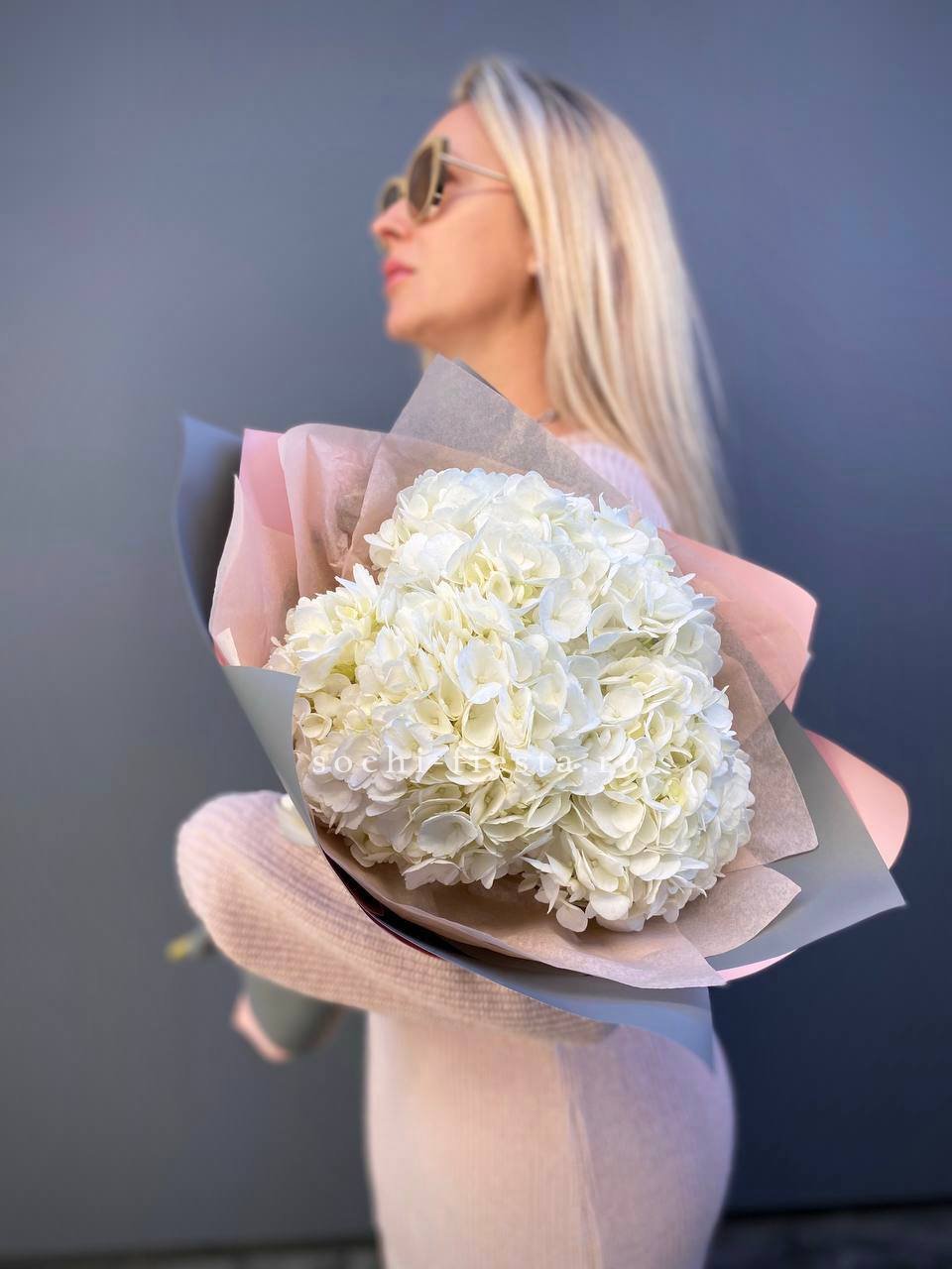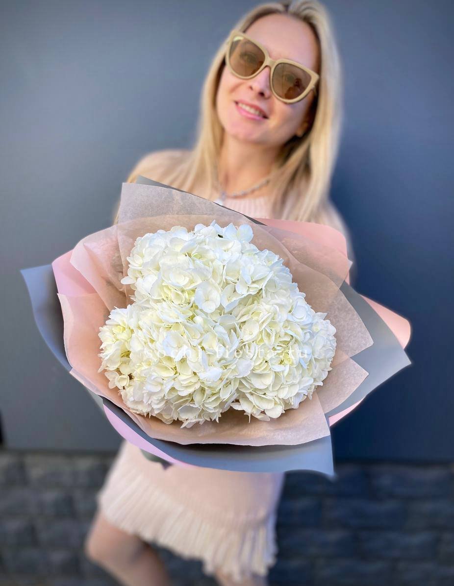 Для заказа товара "Букет из трёх белых гортензий" с доставкой в Балашихе нажмите в корзину