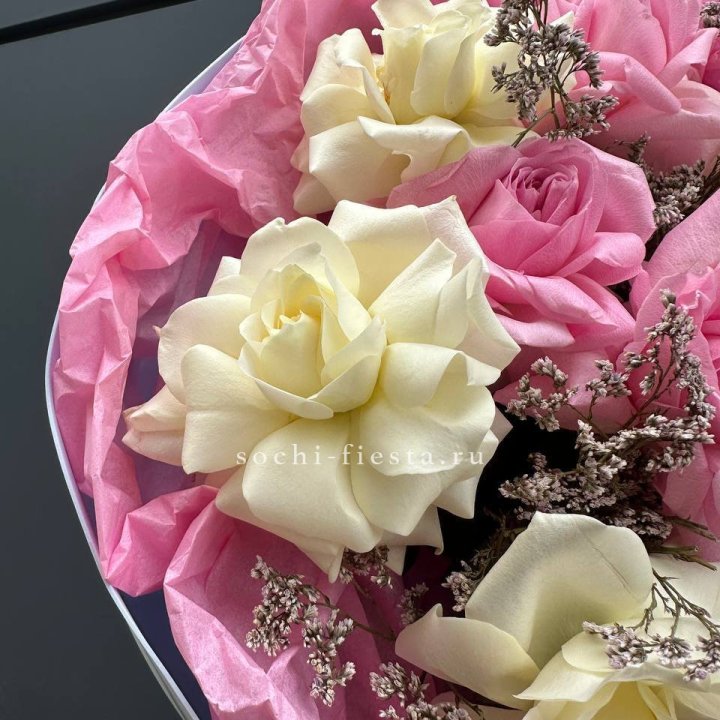 - Редкий состав — David Austin, ранункулюс, анемоны, сезонные пионы.