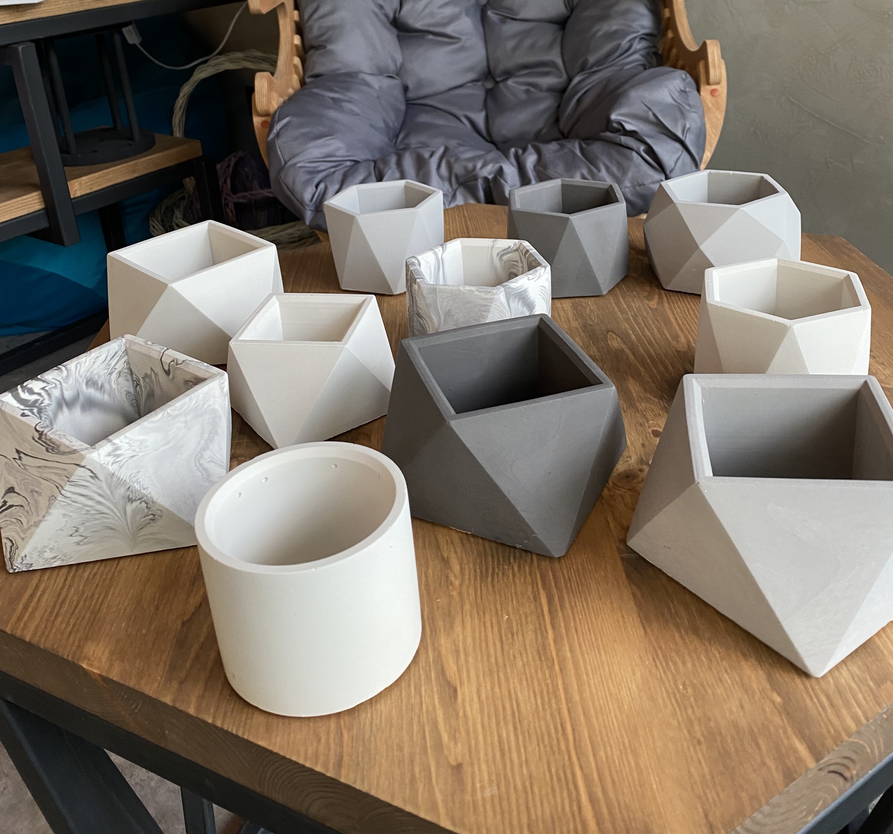 вазы из архитектурного бетона, используемые для сухоцветов, например.