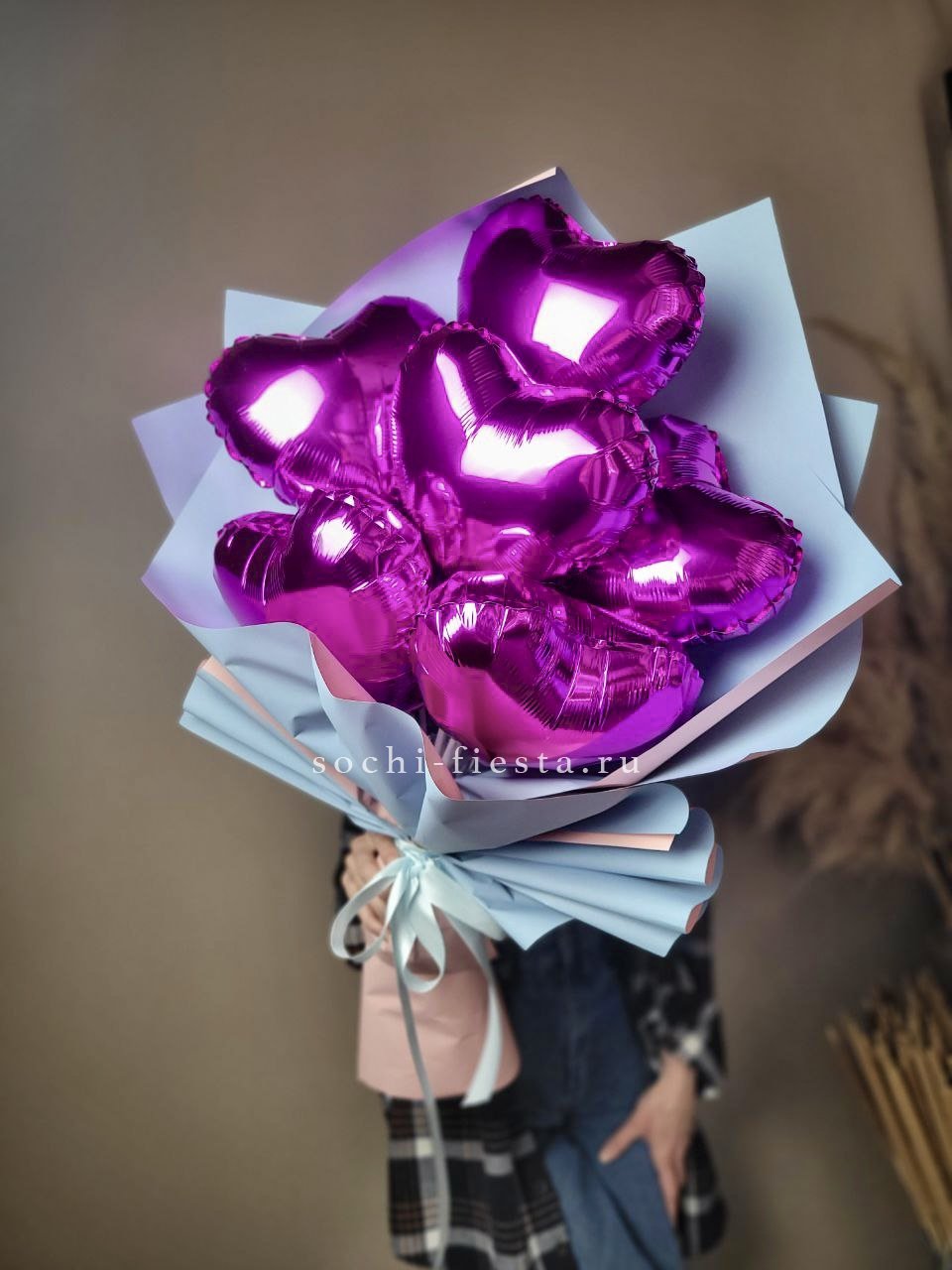 6 шариков на ножках, оформление. Цвет шариков и форма согласовывается с покупателем из наличия. Шарики надуваются воздухом, не гелием! Размер композиции: 50х70см, размер одного шара 25см.