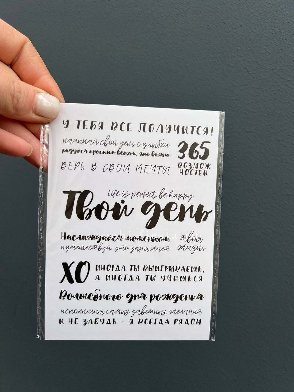 Конечно! К каждому заказу мы бесплатно прикладываем подарочную открытку с вашим текстом. Просто напишите пожелание при оформлении заказа.