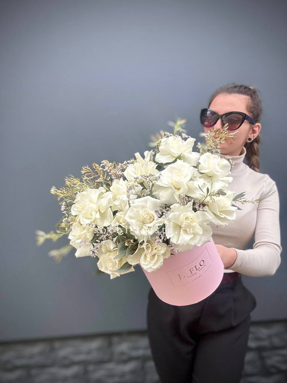 Для заказа товара "17 Французских белых роз в коробке Афина" с доставкой в Балашихе нажмите в корзину