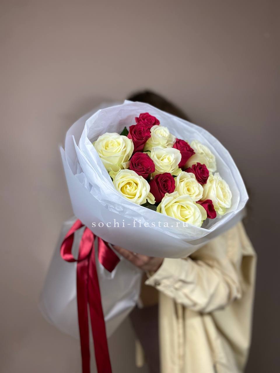 Букет из красных белых 15 роз