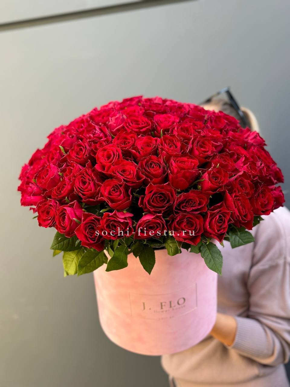 Сто один бутон собран в калейдоскоп оттенков — от персиковых до малиновых. Carousel наполняет пространство живой энергией и яркими переходами цвета.