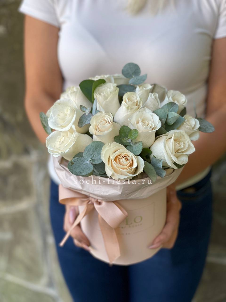 Белые розы в авторском оформлении