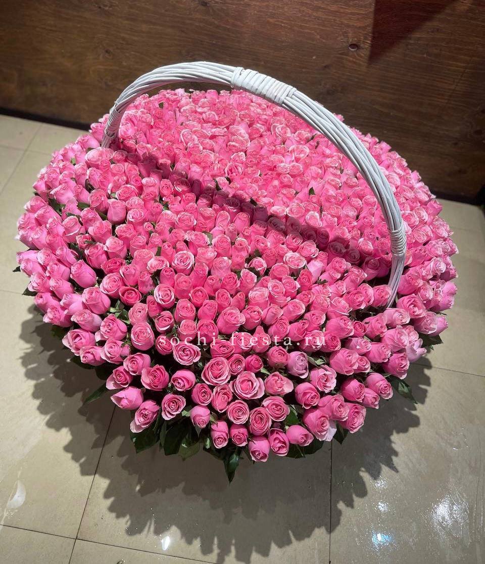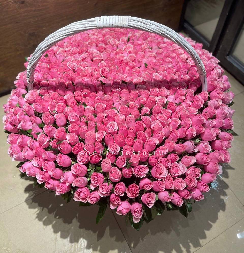 101 розовая роза в корзине