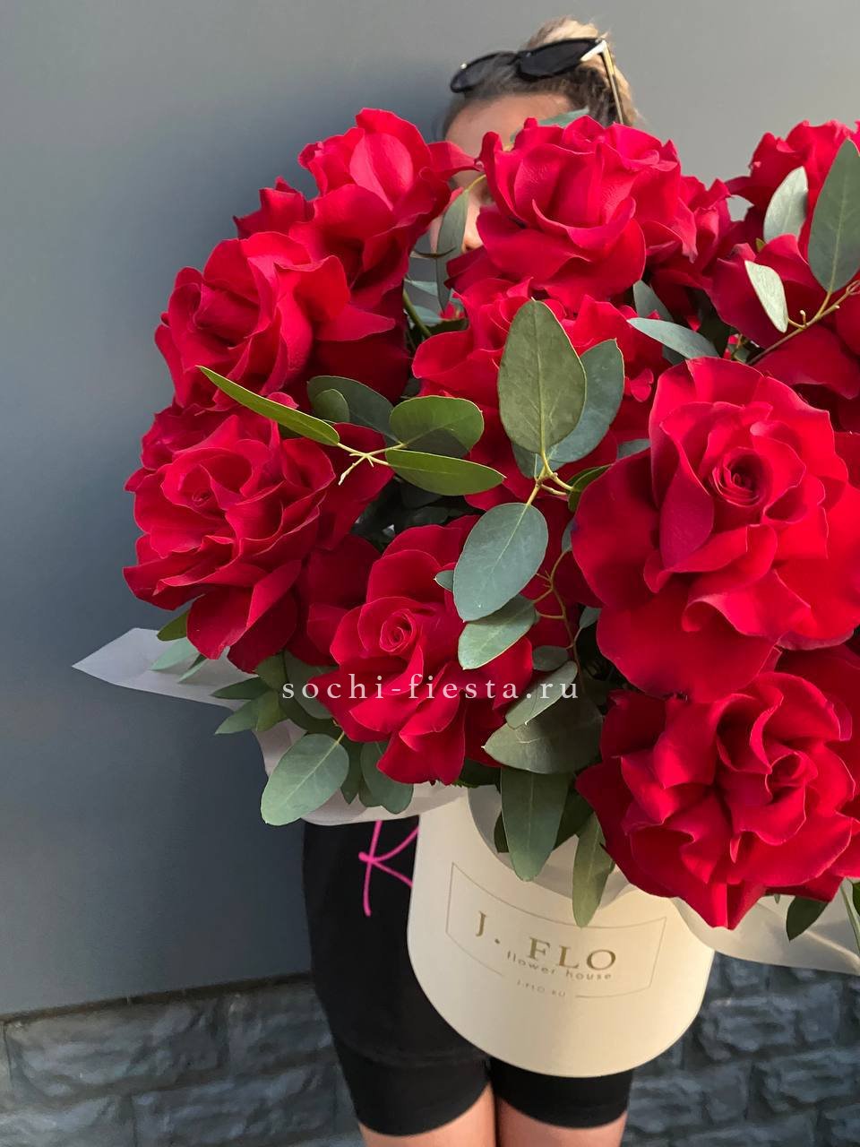 вывернутые розы - 7 шт., эвкалипт - 2шт., лента, авторская упаковка.
