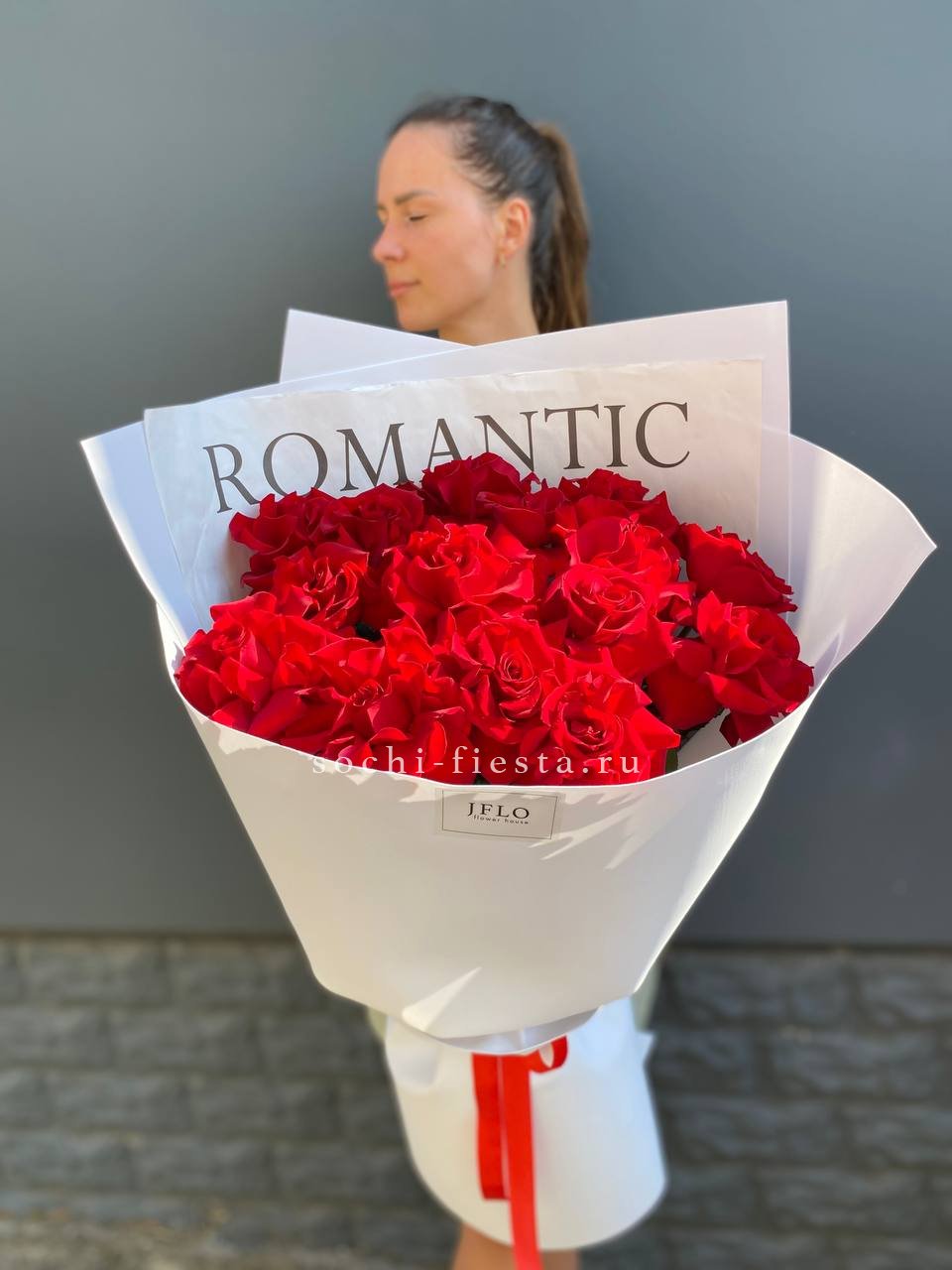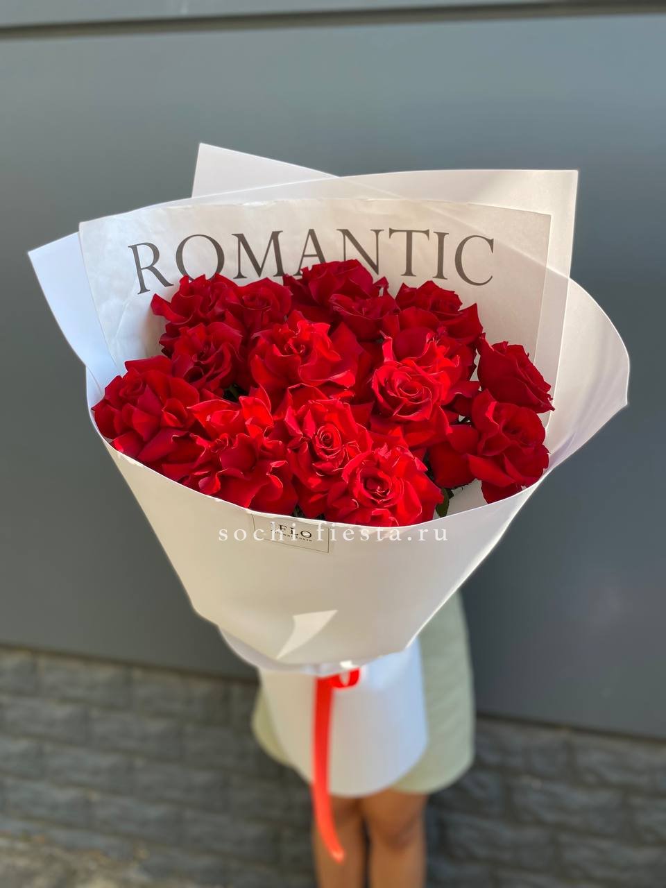 15 красных роз под ленту