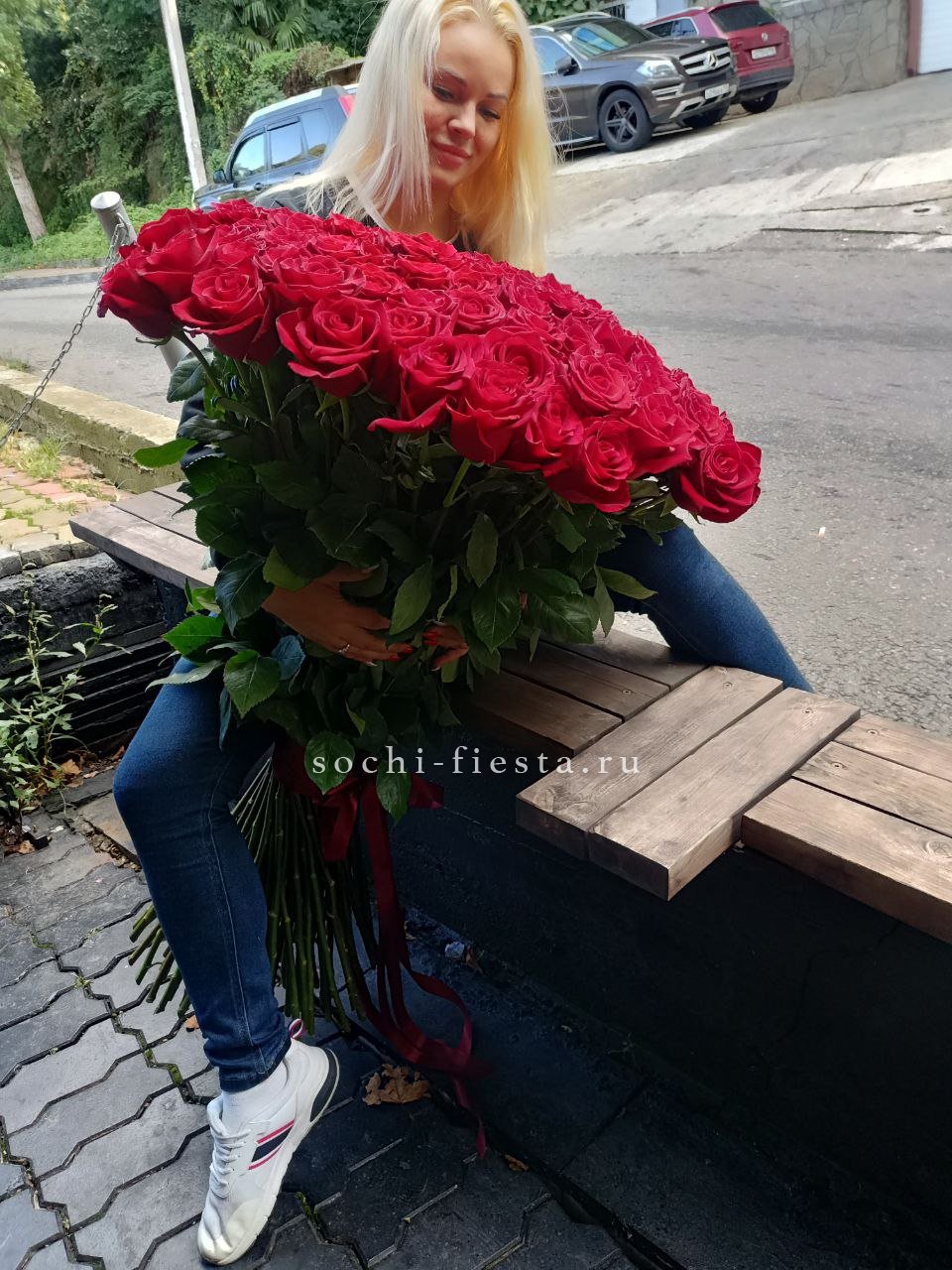 101 розовая голландская роза, лента.