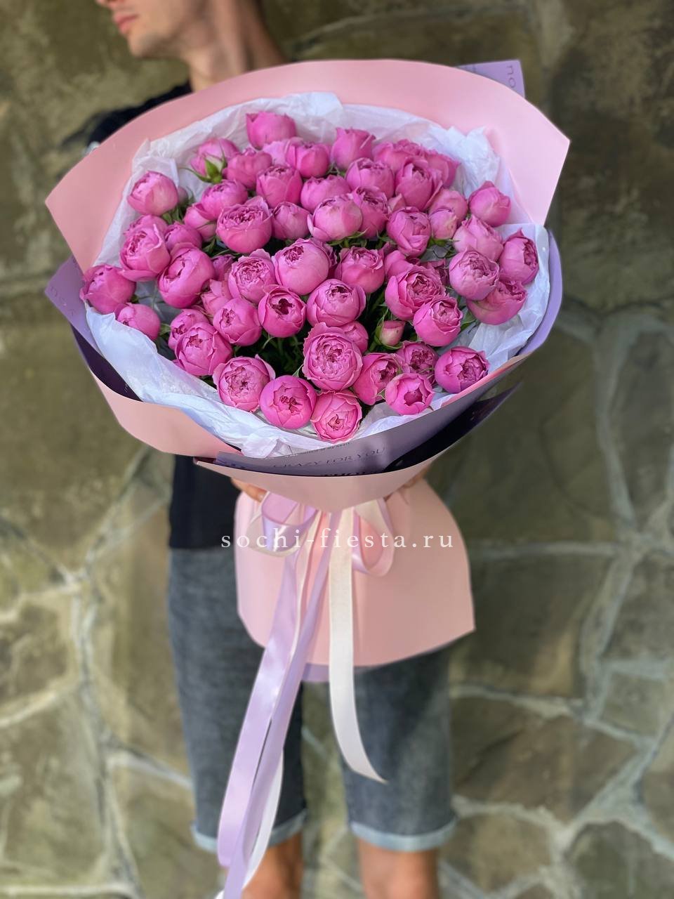 пионовидная кустовая роза Porcelain Lace/бомбастик - 15 шт., лента, авторская упаковка.
