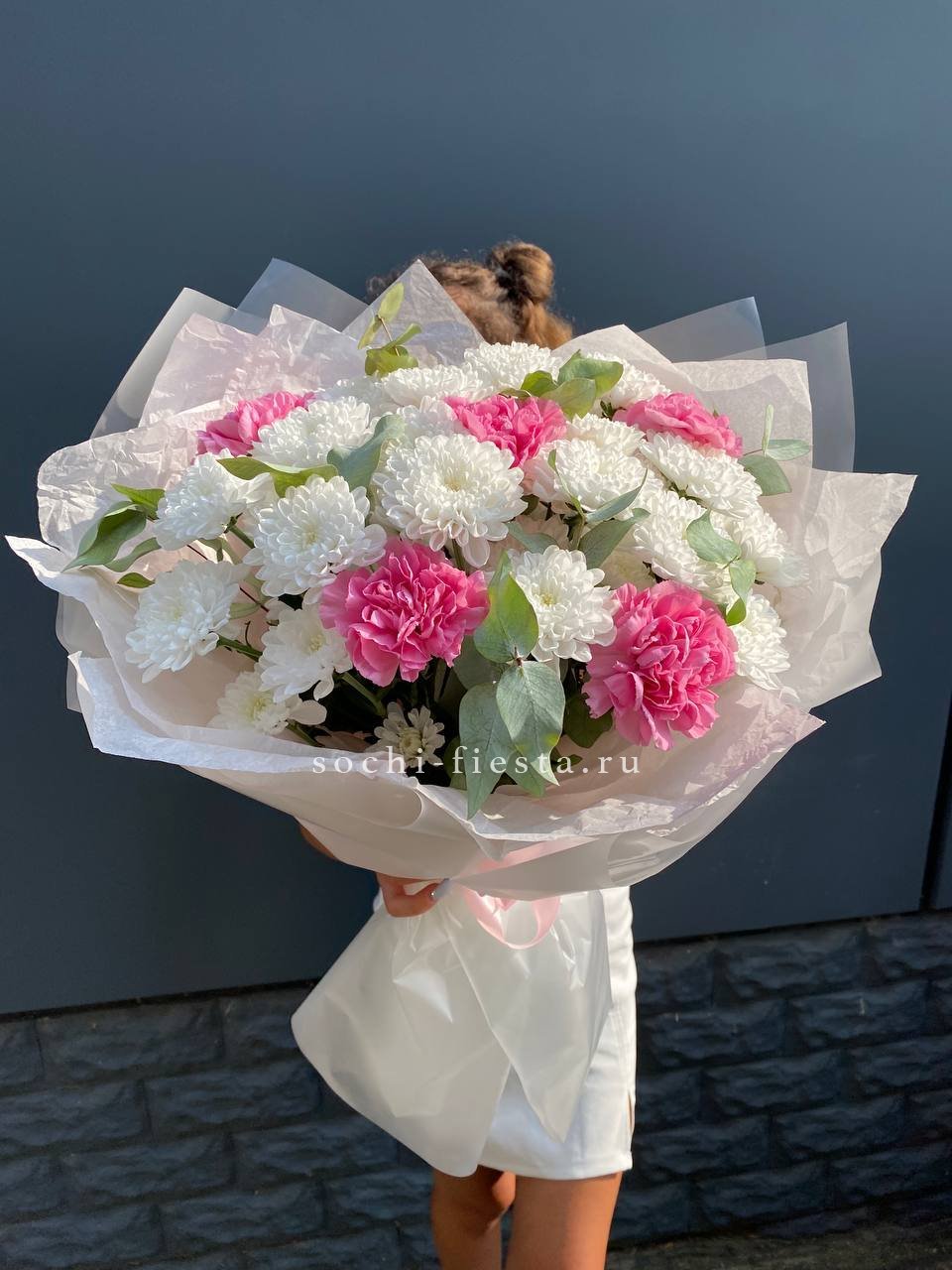 Для заказа товара " Букет хризантем и диантусов "Воздушный"" с доставкой в Балашихе нажмите в корзину