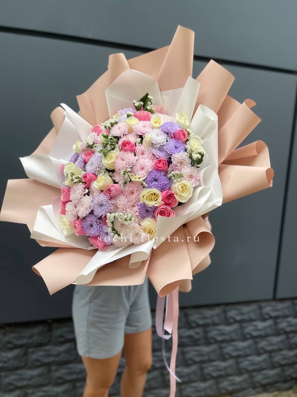 Мы работаем только со свежими цветами — букеты радуют от 7 до 14 дней и дольше при правильном уходе.