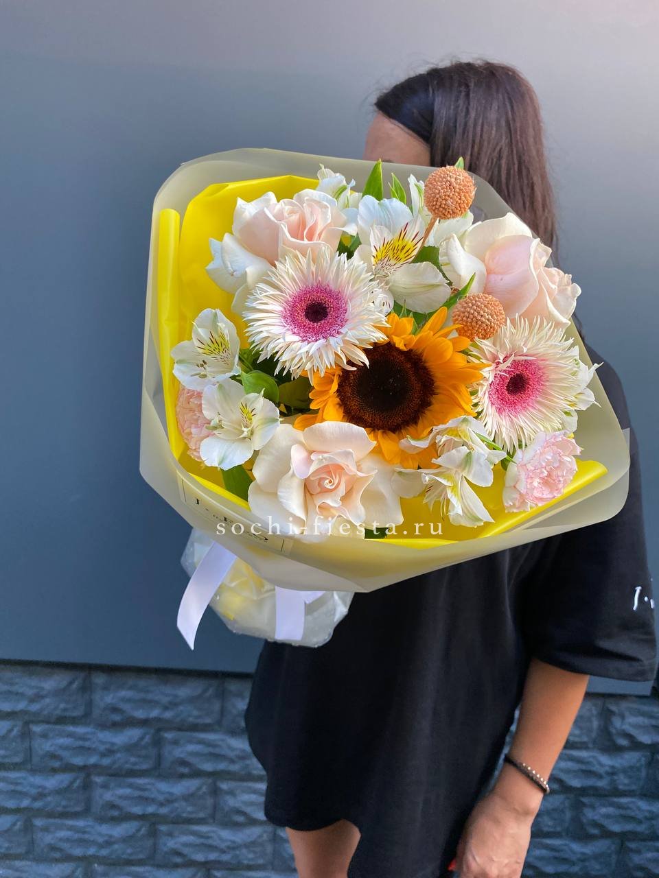 Букет с подсолнухом "Елоу"