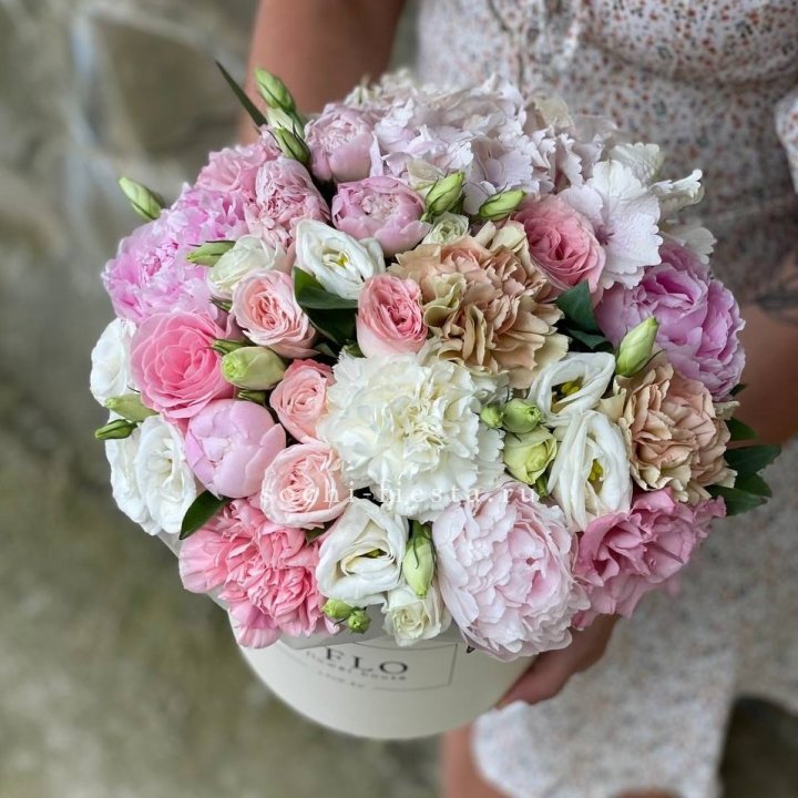 Летние семейные торжества, дни рождения, юбилеи — основной поток летних заказов. Флорист знает клиентов лично, часто предлагает сезонный акцент к знакомому формату: пионы к обычному розовому букету, гортензия к миксу с эвкалиптом.