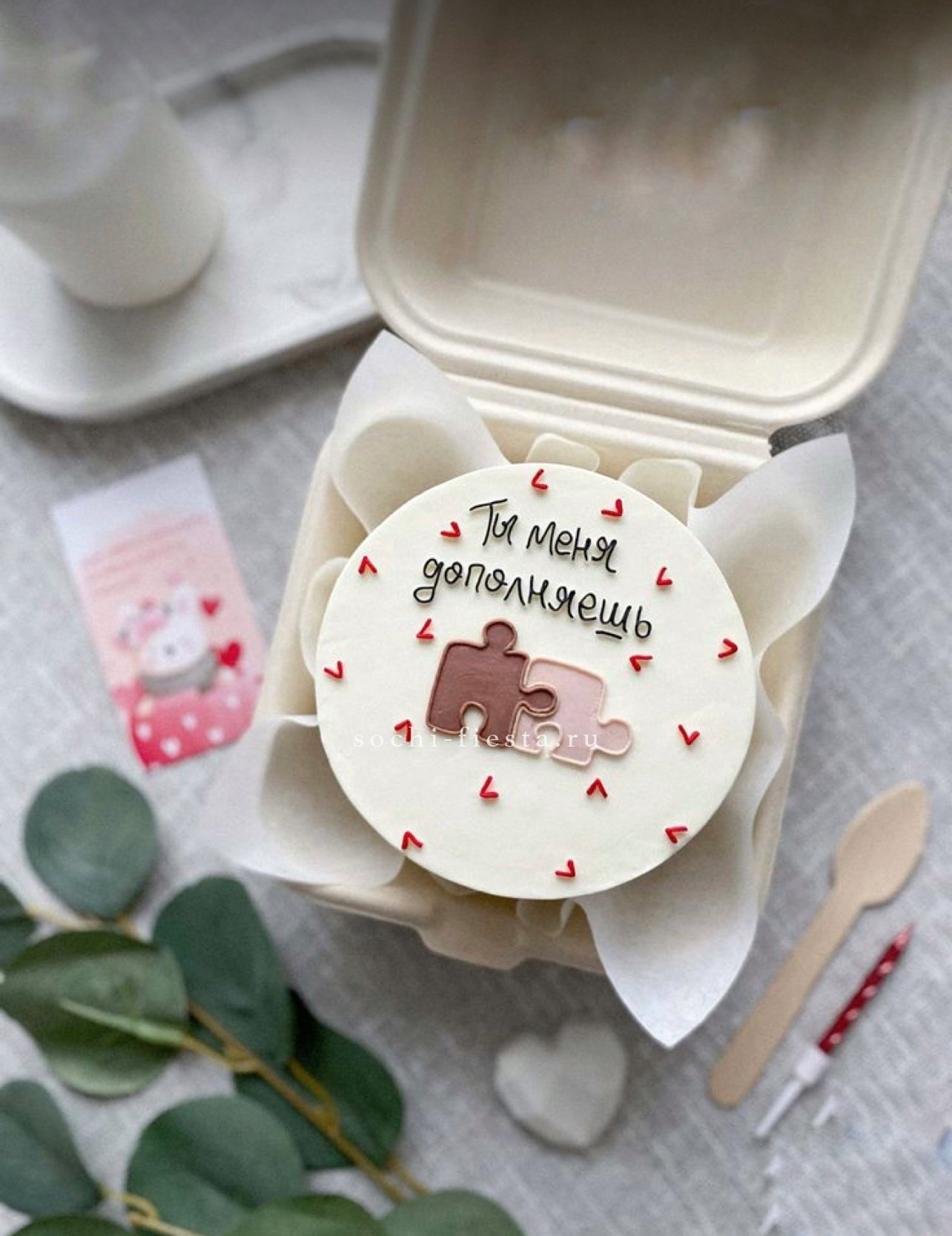 Золотые сердца на белоснежной поверхности задают графичный ритм композиции. Двухкилограммовый торт впечатляет объемом и предлагает три варианта начинки на выбор. Декор включен и продуман до мелочей.